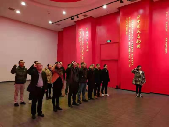 在宣誓厅,全体学员面对鲜艳的中国共产党党旗重温入党誓词,铮铮誓言直抵内心、触动灵魂。