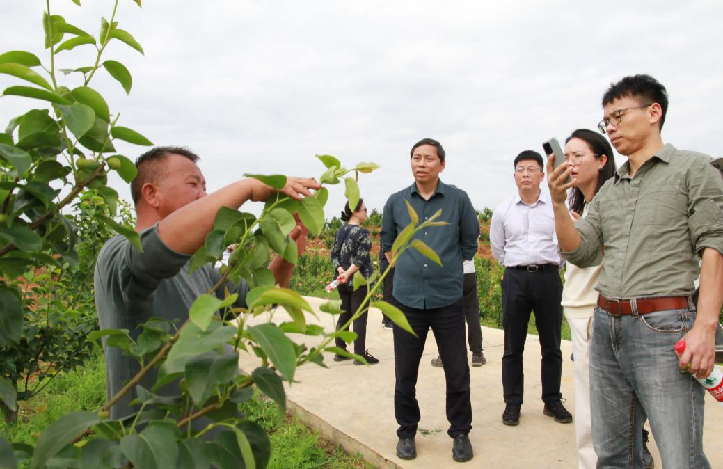 在村里的秋月梨种植示范基地,负责人肖时炯介绍了基地的基本情况,以及在发展壮大村集体经济、带动村民创收增收等方面所做的努力,并向大家普及了剪枝、疏果、管护技术要点。