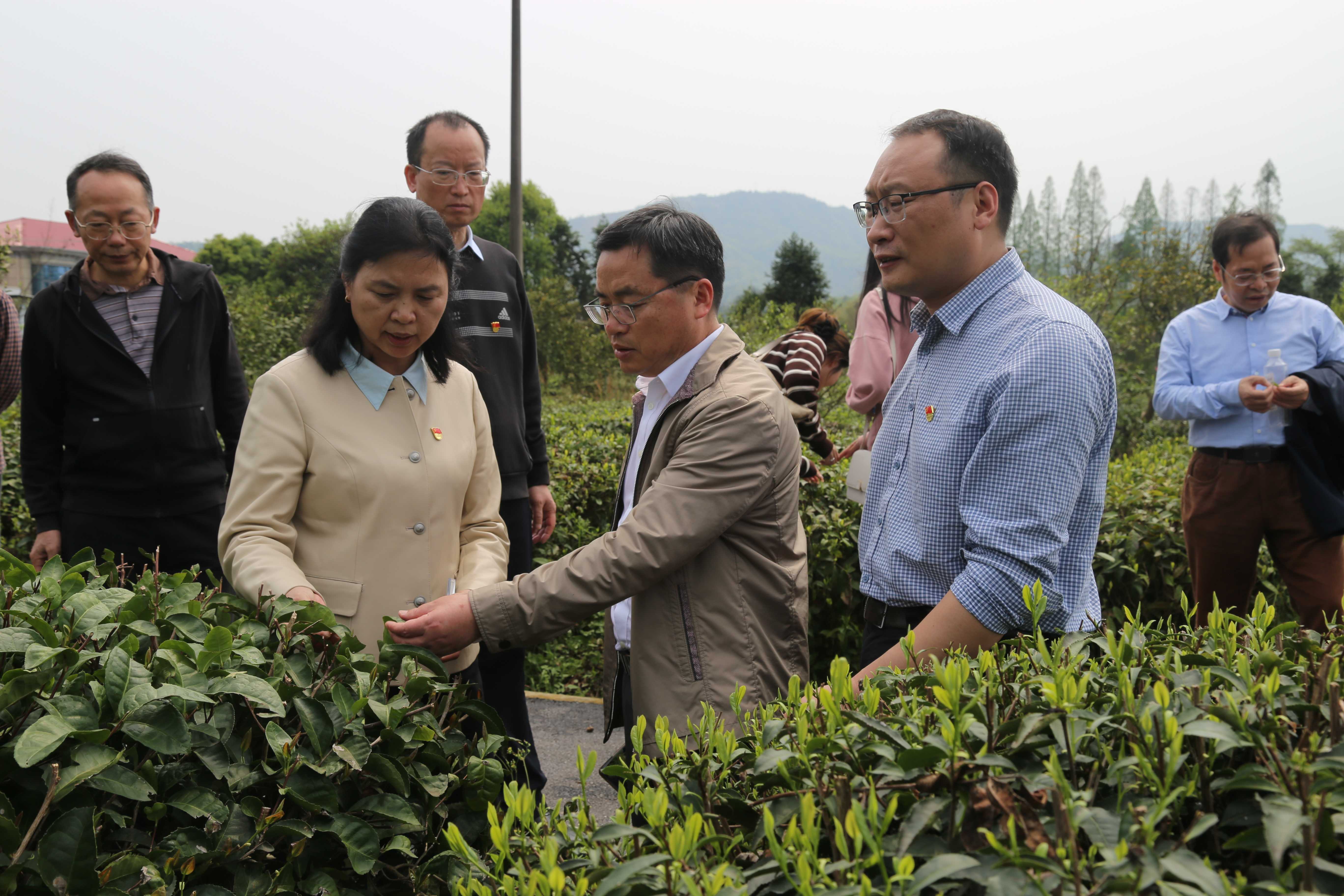 省种子管理服务站坚持党建与业务深度融合,在科研与生产一线开展树立和践行正确政绩观学习教育。4月8日,我站组织技有专长的部分在职党员和老专家,到长沙县高桥镇国家中小叶茶树种质资源圃、国家茶树育种联合攻关项目点、茶树新品种新材料比较试验区、优良新品种大面积展示区,采取田间现场指导与座谈协商相结合的方式,积极开展茶叶品种选育和茶产业优化精细指导服务。
