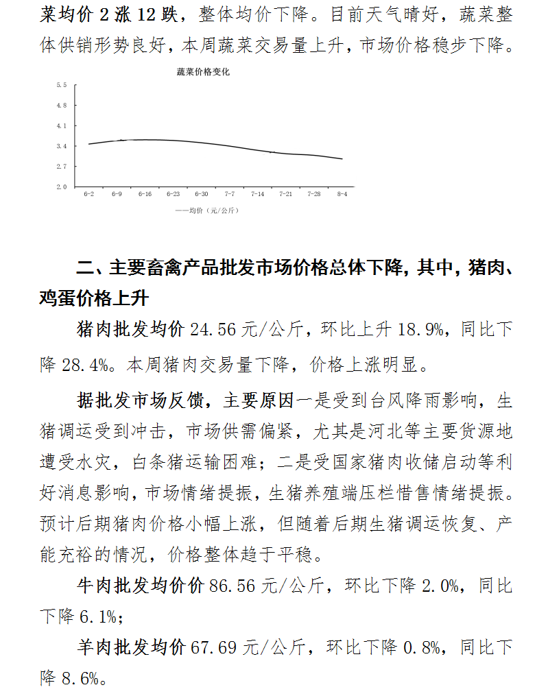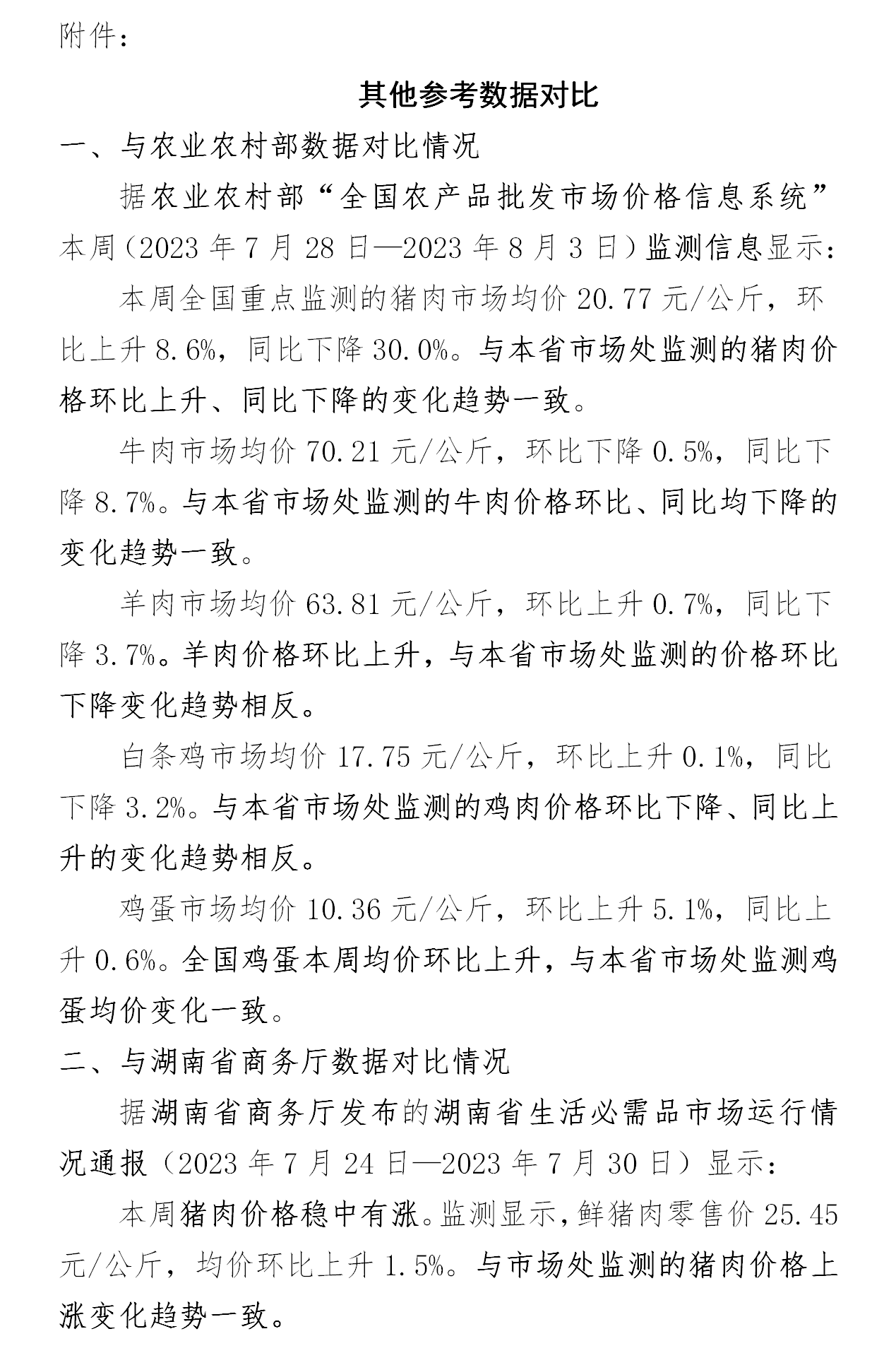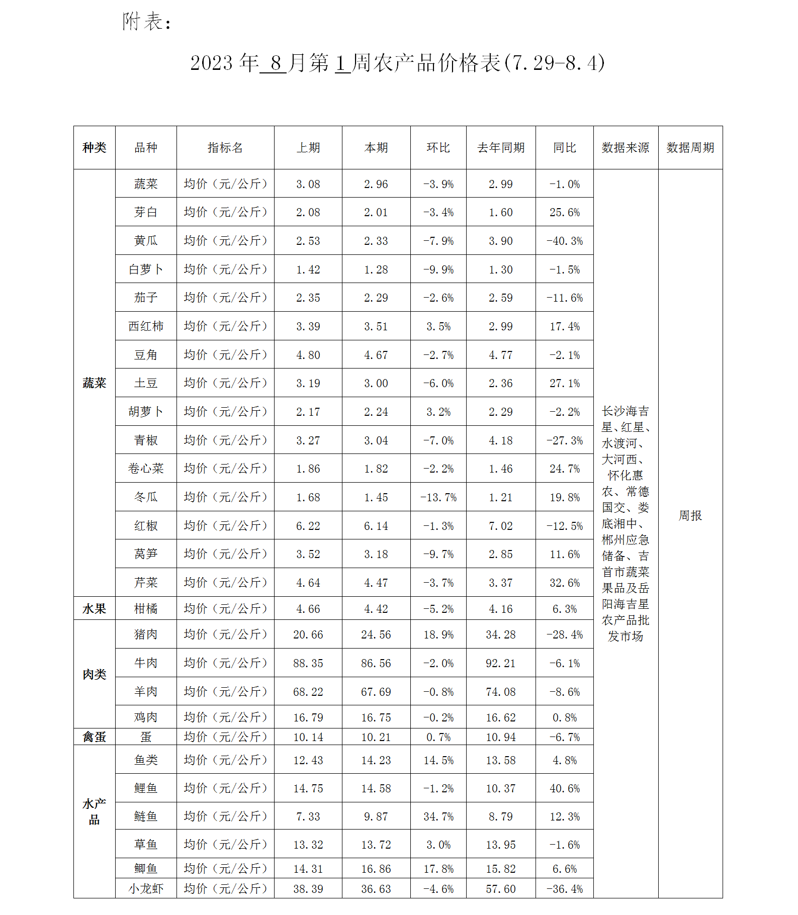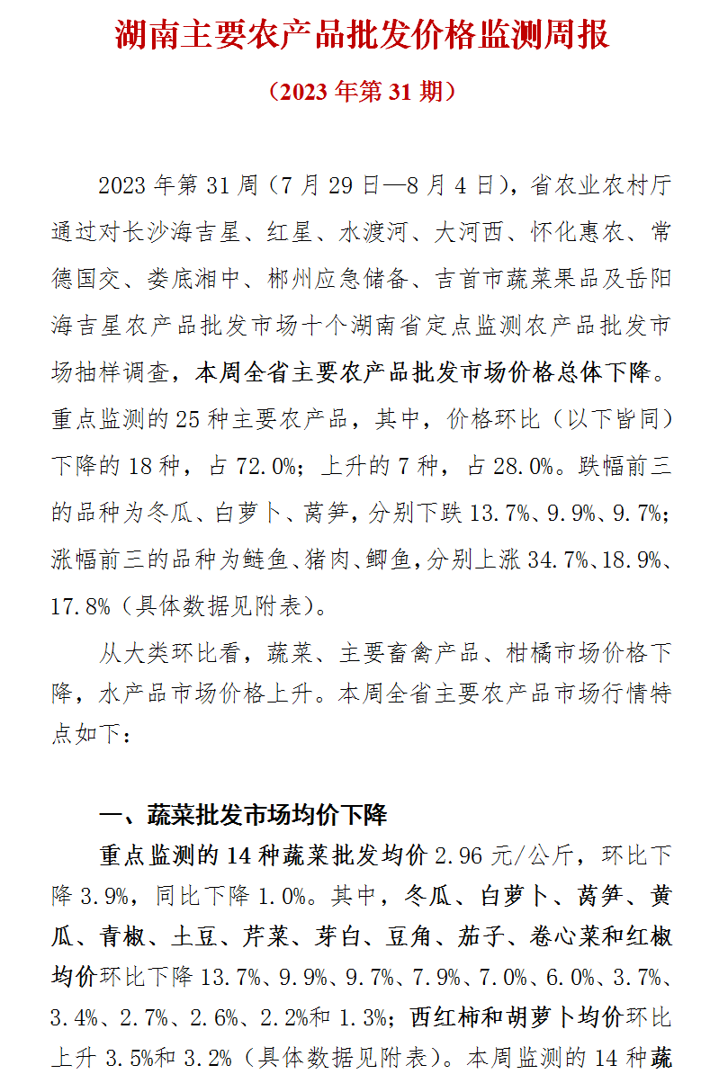 湖南主要农产品批发价格监测周报(2023年第31期)