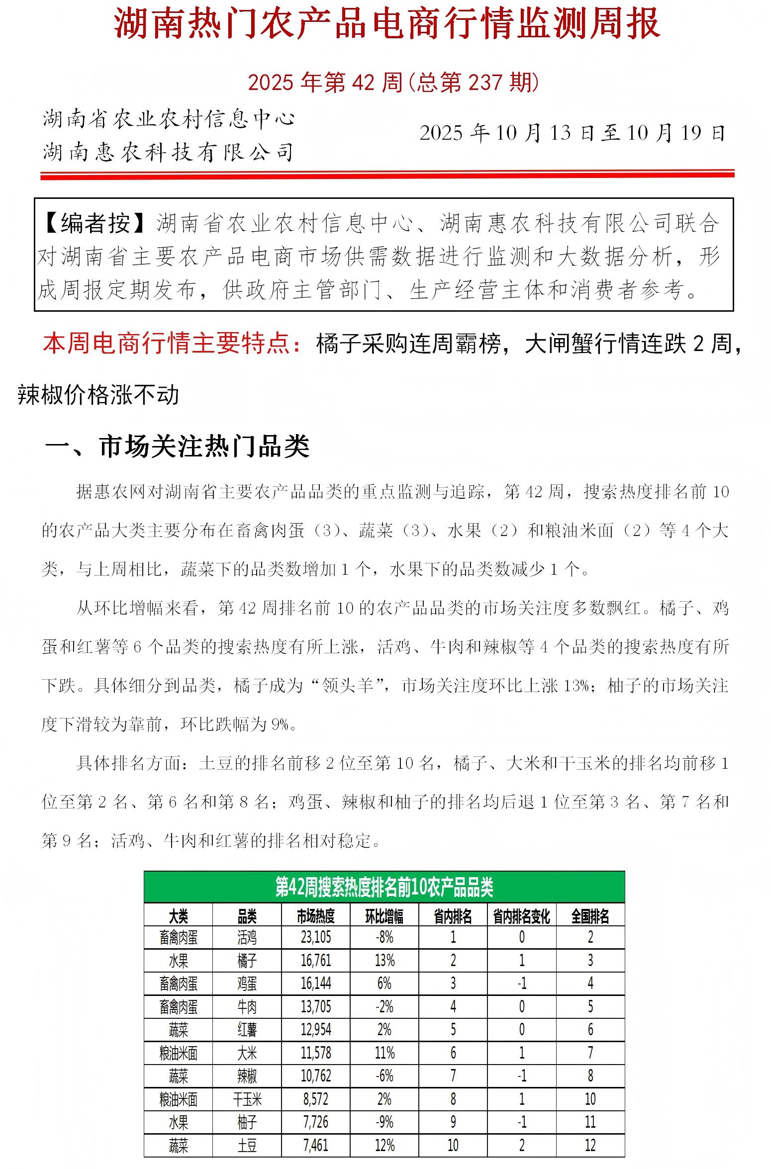 湖南热门农产品电商行情监测周报(2025年第42期)