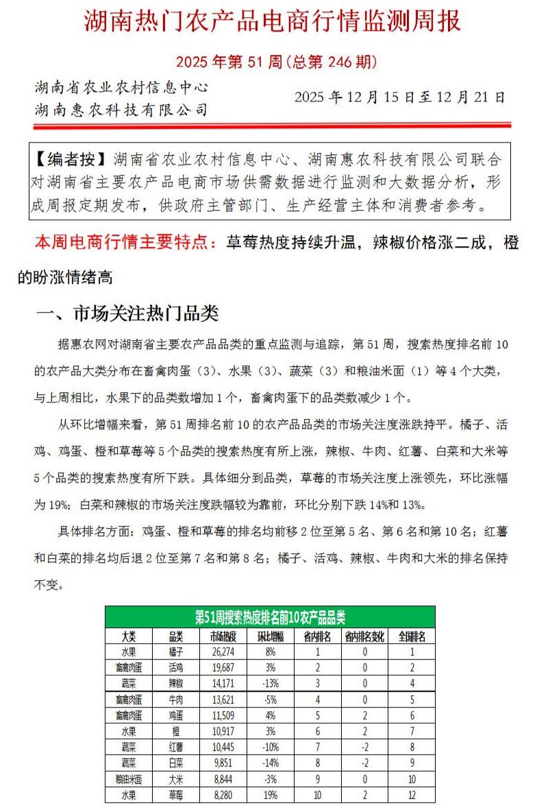 湖南热门农产品电商行情监测周报(2025年第51期)