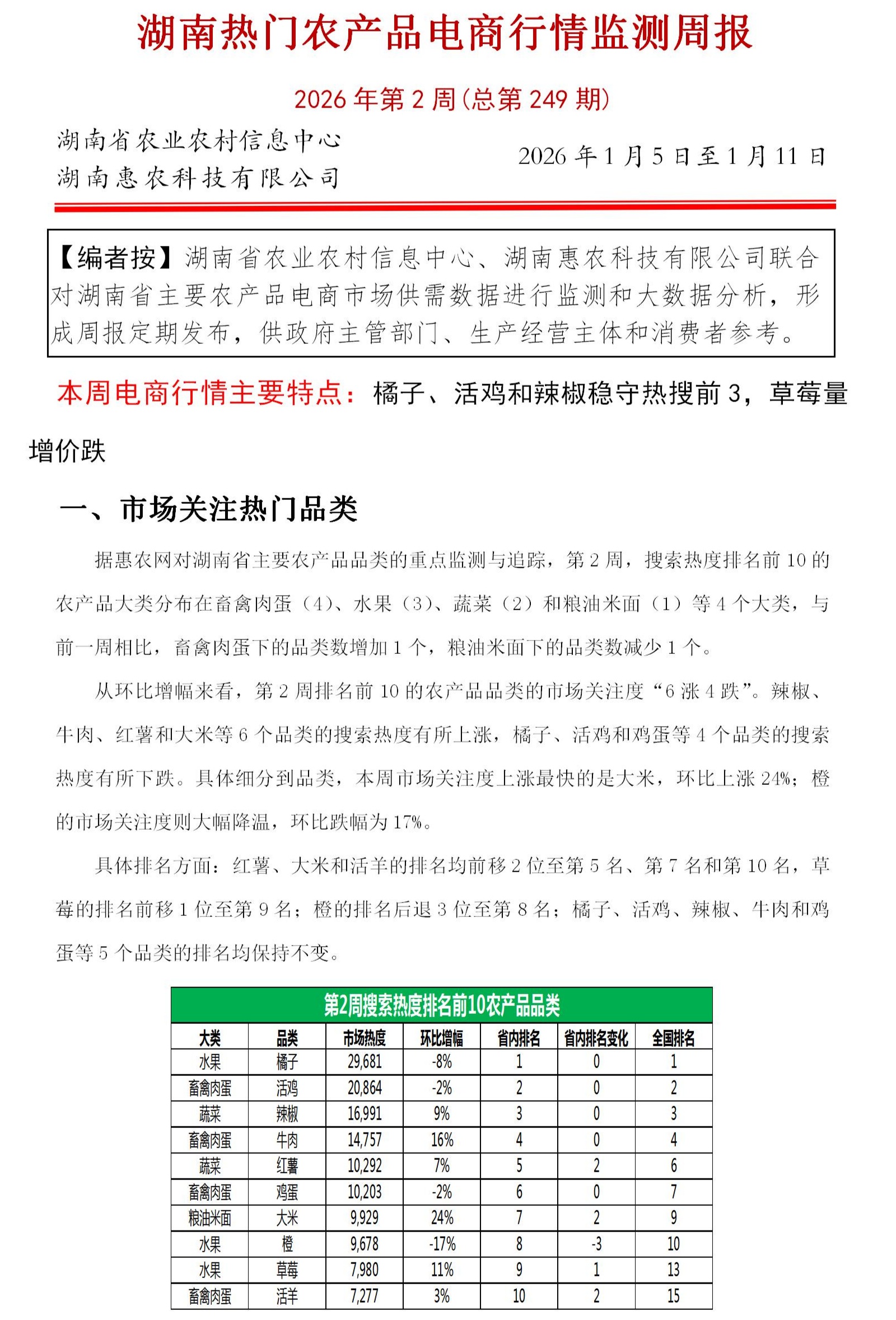 湖南热门农产品电商行情监测周报(2026年第2期)