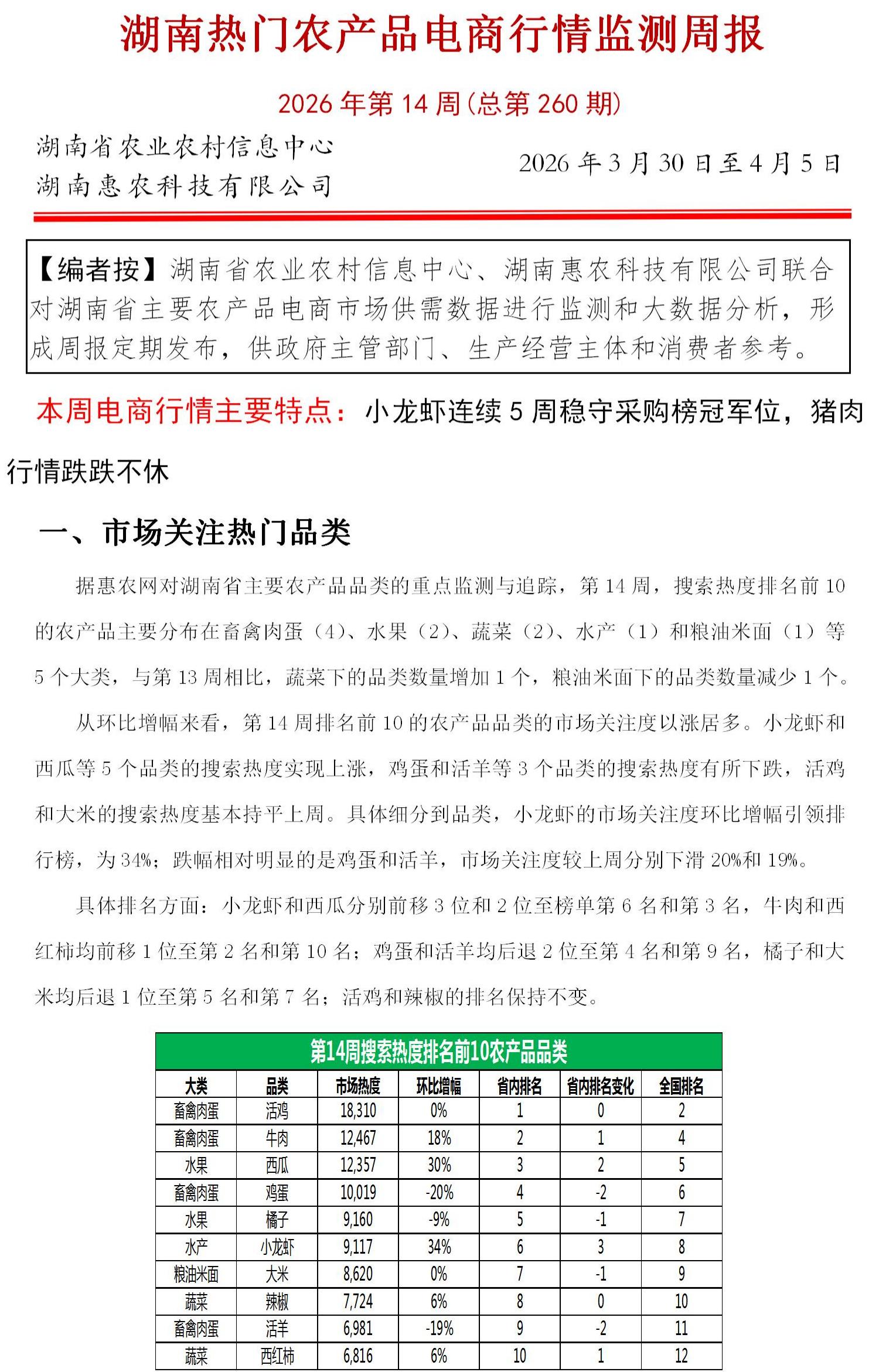 湖南热门农产品电商行情监测周报(2026年第14期)