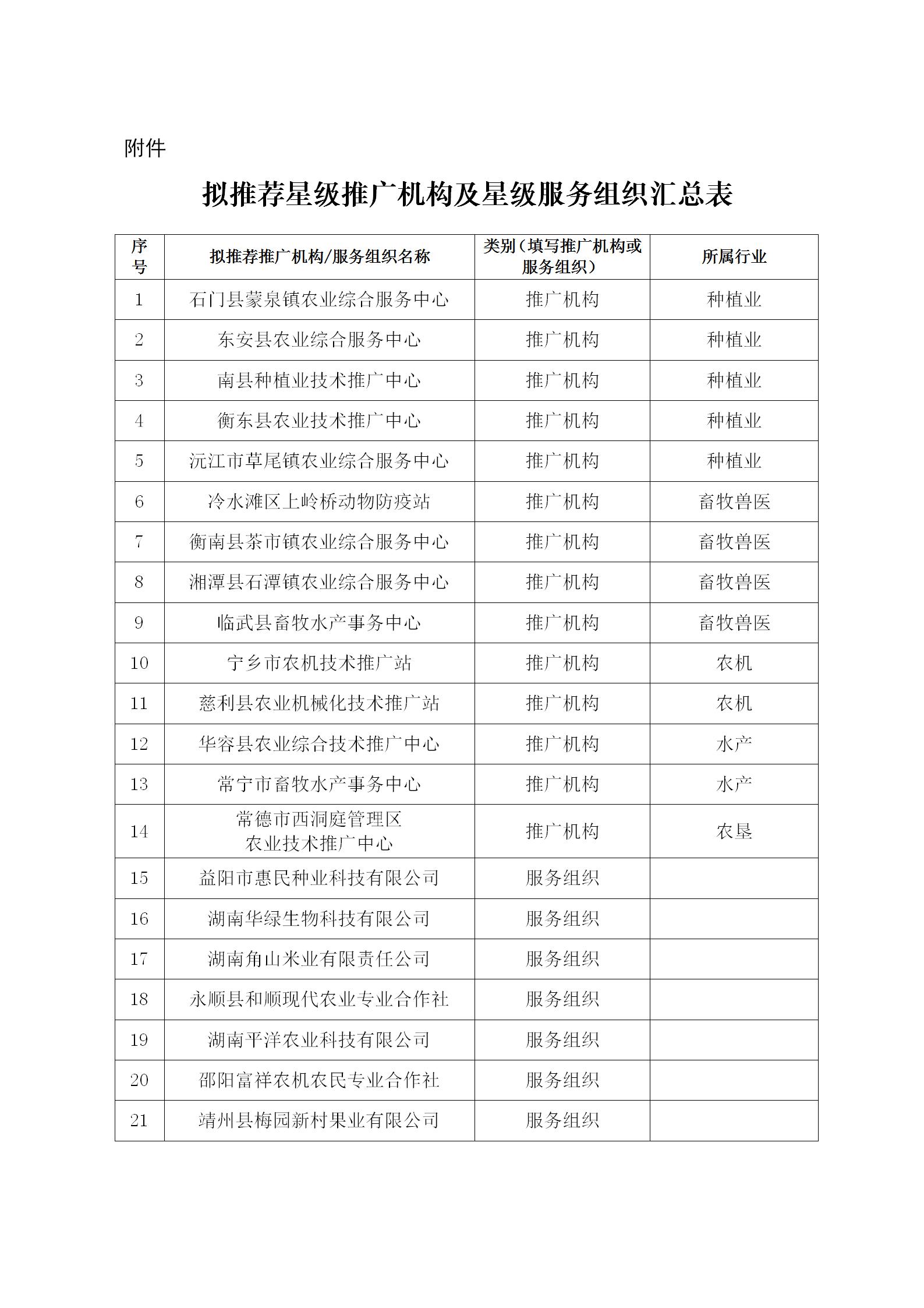 附件:拟推荐星级推广机构及星级服务组织汇总表