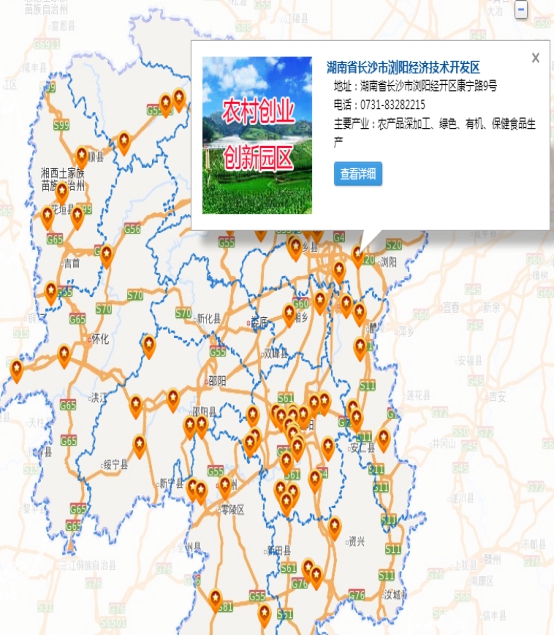 以下为“湖南省农村双创园区(基地)电子地图”界面截图。