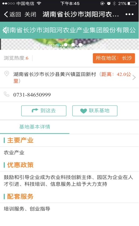 点击进入(二级界面),可以浏览园区(基地)相关信息。