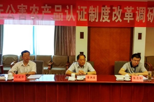 2017年8月初,由农业部农产品质量安全监管局标准化处处长董洪岩带队,中国绿色食品发展中心体系标准处处长张志华、农业部农产品质量安全中心审核处研究员刘建华一行三人在湖南进行调研,并在长沙召开了无公害农产品认证制度改革调研座谈会。座谈会由省绿色食品办公室主任朱建湘主持,省农产品质量安全监管处、省农产品质量检测中心、省畜牧水产技术推广站、长沙市、长沙县、望城区、宁乡县、浏阳市绿办负责人参加了座谈。