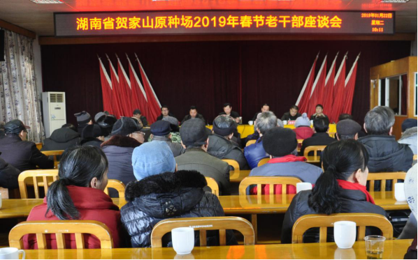 会上,宋武向老干部们致以新春的问候,他指出在老干部的支持和帮助下,2018年全场各项工作取得了好成绩:退休干部养老金发放实现规范化;农工养老保险欠费问题得到彻底解决;干部收入持续提高,工资调标兑现到位;参加厅系统各类活动屡创佳绩,展示了贺家山良好形象;社会和谐稳定,连续三年被评为厅系统综治先进单位等。他通报了2019年工作重点:进一步抓好事业单位改革、推进省道S513贺家山段建设和深入实施乡村振兴战略。