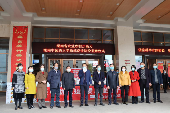 3月16日上午,省农业农村厅向湖南省中医药大学所属3家医院援鄂抗疫一线医务人员捐赠绿色食品活动在省中医附一医院举行。省农业农村厅机关党委专职副书记彭义春、省中医药大学党委委员副校长易刚强出席捐赠仪式并讲话,省绿色食品办公室主任朱建湘向易刚强捐赠物资清单。省中医附一院党委书记刘平安、院长陈新宇、党委委员副院长朱镇华、省中医研究院附属医院党委副书记郭建农、省中医附二院党委副书记杨彤等参加了活动。