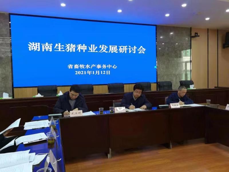 为加快培育自主知识产权“湘”系瘦肉型猪种,实现湖南种猪核心种源基本自给,扭转受制于人的被动局面,湖南省畜牧水产事务中心于2021年1月12日组织召开了湖南生猪种业发展研讨会。省农业农村厅畜牧业、种业主管处室,主要教学科研单位湖南农业大学、省畜牧兽医研究所,省内主要生猪龙头企业、国家生猪核心育种场、联合育种平台企业、隆平高科技园等单位派代表参加了研讨会。