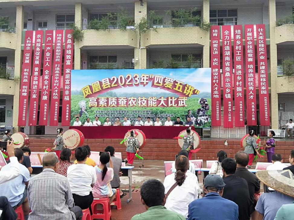 自2019年以来,凤凰蚕桑产业在凤凰县委的大力支持下得到了快速发展,达到了桑园面积上万亩,养蚕乡镇近10个,养蚕批次12批次,栽桑农户近1000家,蚕茧产值超3000万元。2023年8月2日-4日,国家蚕桑体系岗位科学家赵爱春教授受凤凰县委组织部、县蚕桑办邀请到凤凰县蚕桑基地指导蚕桑生产。赵教授在县委组织部副部长张常亮、蚕桑办主任吴金泽、长沙试验站凤凰基地负责人景艳梅等陪同下,深入蚕桑重点乡镇落潮井镇实地考察指导,先后考察了小蚕、中蚕共育室、大蚕标准化饲育大棚、蚕茧收烘站、三旭公司等,指出合作社与农户联合推行“三段式养蚕”可缩短农户养蚕时间,做到“十天养蚕”,实现多批次养蚕与专业化养蚕,降低养蚕农户的养蚕风险性,提高养蚕质量,增加蚕农收入,利于蚕桑基地稳定发展;推广抽拉式活动蚕台,配套自动上蔟技术,可降低劳动强度,提高蚕茧质量。特别是8月3日在凤凰县举办的2023年“四爱五讲”高素质蚕农技能大赛上,赵教授受邀以“发展精品蚕桑,推进凤凰蚕业高质量发展”为题作了专家报告。在此次技能大赛上开展了给桑、采茧技能表演比赛、蚕桑知识抢答,颁发了高素质农民证书、新型职业农民证书,表彰了一批养蚕大户、蚕桑合作社,开展了蚕农优惠政策宣传。