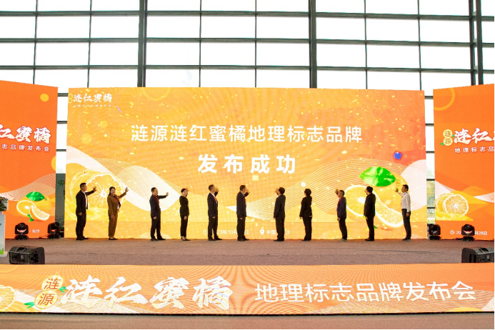 蜜橘飘香,涟红十里。10月28日,涟源“涟红蜜橘”地理标志品牌在农博会上发布。
