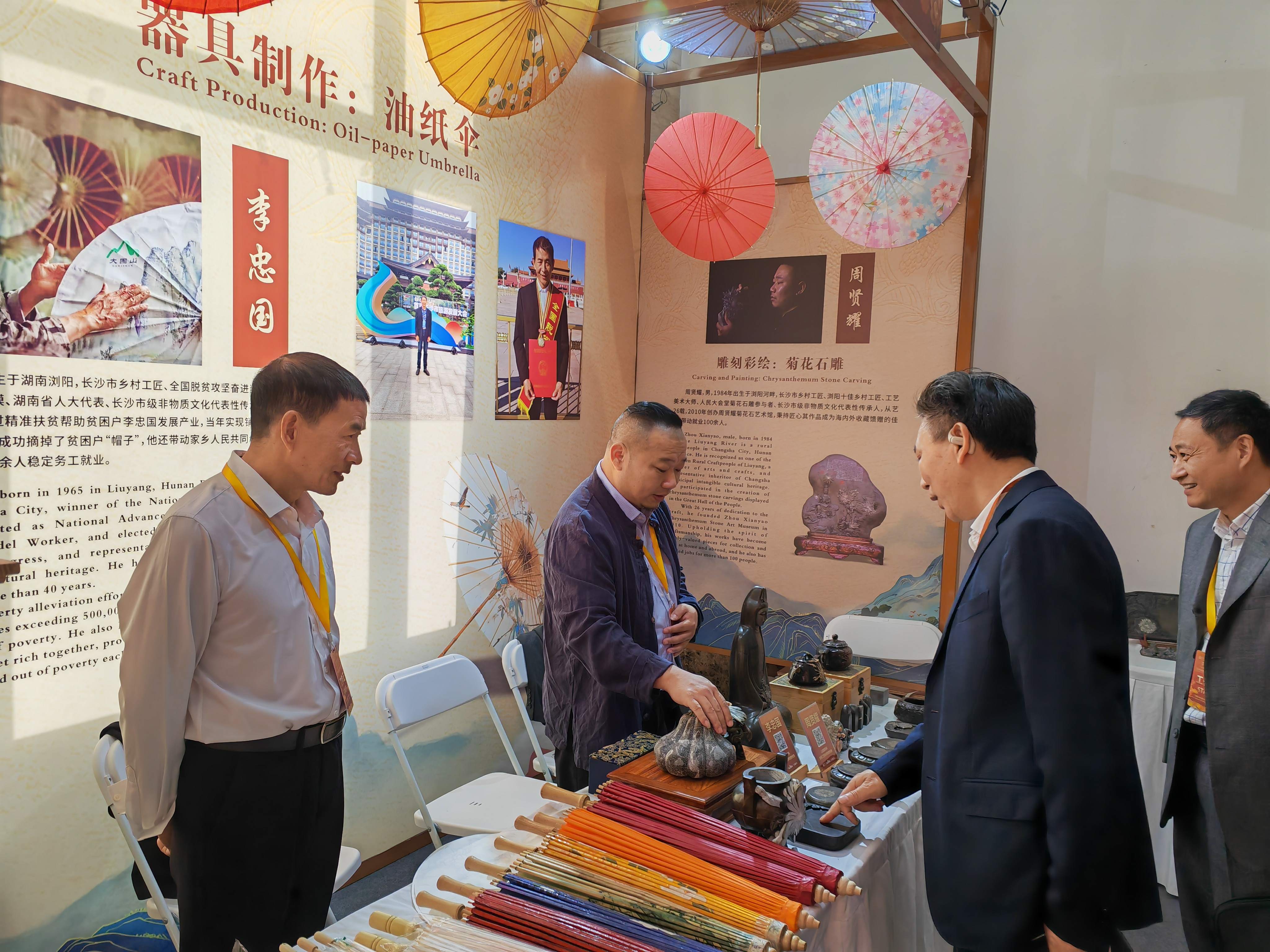 国家级非物质文化遗产菊花石雕代表性传承人周贤耀,将菊花石雕技艺传授给更多乡村群众,带动一批人通过非遗技艺实现技能增收,让“石中菊”成为乡村文化振兴的“致富花”。全国脱贫攻坚先进个人、浏阳油纸伞第三代传承人李忠国就是“非遗助力脱贫”的生动注脚:2015年,尚为椒花新村建档立卡贫困户的他,在村集体帮扶下,创办达兴工艺品厂,重振祖业,当年即实现销售额突破50万元,成功脱贫。