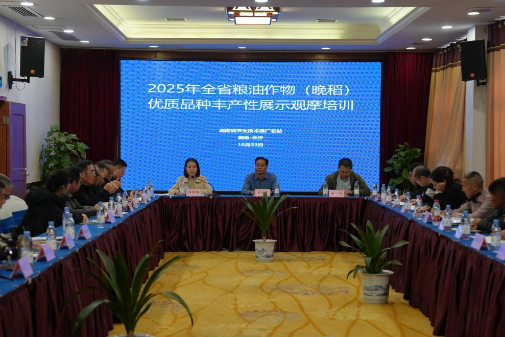 10月22日-23日,全省晚稻优质品种丰产性展示观摩培训会在长沙召开,湘北、湘中、湘南不同生态区双季稻优质品种丰产性展示基地所在市、县农技推广负责人和实施主体参会。