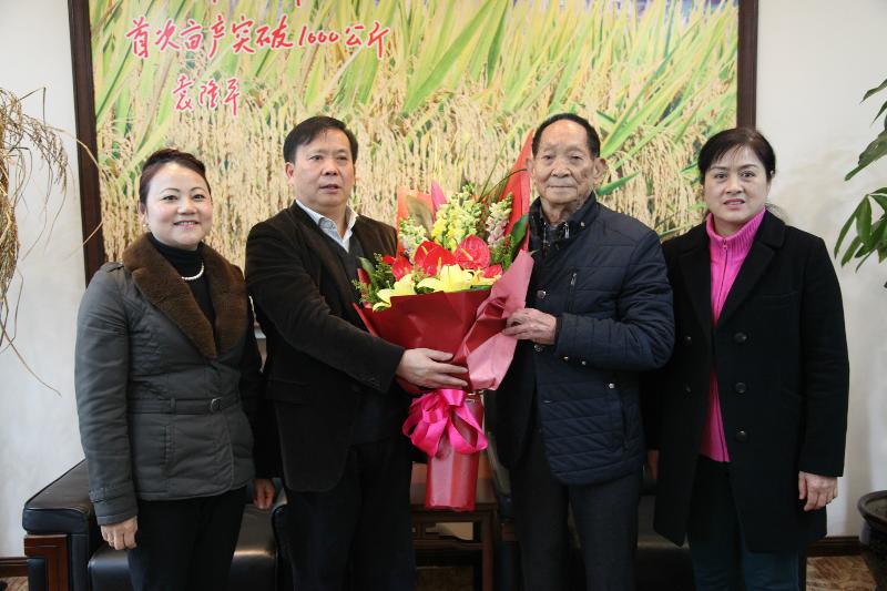1月18日上午,省农委主任刘宗林、副主任黄其萍一行来到湖南杂交水稻研究中心和湖南农业大学油料作物研究所,看望慰问袁隆平、官春云两位院士,代表省农委向两位院士长期以来在农业领域做出的卓越贡献表示感谢,并致以新春祝福!两位院士向刘宗林介绍了各自科研的近期和中长期计划,刘宗林风趣地称赞袁院士是超级稻育种的“魔术师”,育种技术在他手中千变万化、随心所欲,并表示看到两位院士精神矍铄、身体健康感到很高兴,希望两位院士保重身体,省农委将一如既往地重视、支持院士的工作,并将继续依托院士优势,推动湖南农业发展再上台阶。委科教处处长蔡小汉等领导陪同。