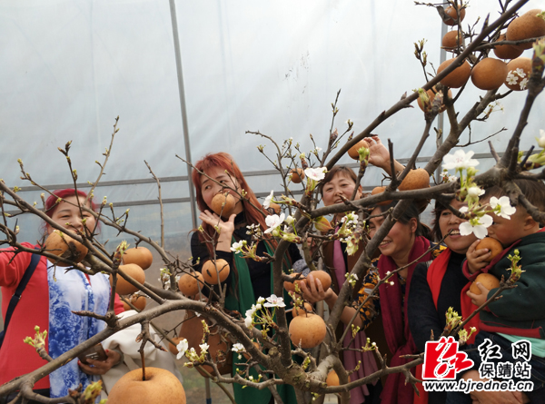 走在王辉的农业庄园,最引人折腰的就是晚秋黄梨“果花同树”奇观。王辉为了掌握“留树保鲜”技术,先后多次赴安徽、河南等地学习,经过多次实践,最终实现了自己的目标。这两年,因为晚秋黄梨“果花同树”,出现了大批游客前来参观的盛况。更有游客花高价购买早春后还挂在树上的黄梨,王辉均婉言谢绝了。