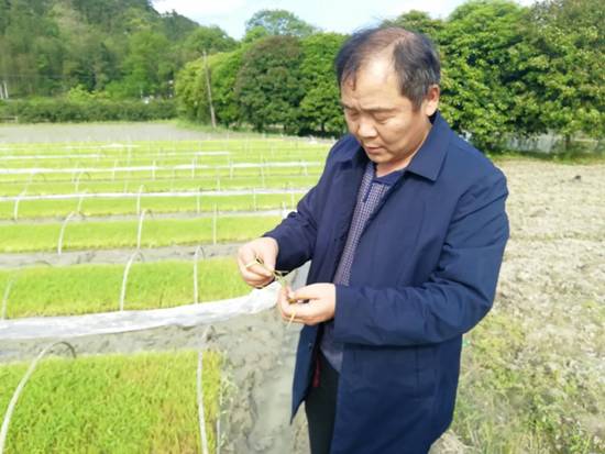 一是通过微信群提醒早稻种植户适时浸种催芽,抢冷尾暖头播种。二是根据播种天气指导农户播种后敞1-2天,降低秧盘营养泥水分后盖膜,便于扎根。三是指导农户适时两头揭膜,通风换气,降低膜中湿度。四是编制“当前早稻育秧重点工作”技术资料,指导农户抓好“离乳”期秧苗培管工作。五是利用4月8-9日短暂的晴好天气,派出技术人员深入田间地头指导农户揭膜、灌水、喷药,防治3叶期易发生的立枯、青枯死苗;要求农户根据营养泥养分状况撒施尿素、硫酸胺等,及时补充营养。4月19-22日,再次分组派出技术人员深入田间地头指导农户及时排水、施药,加速生长促盘根,实施抛栽。