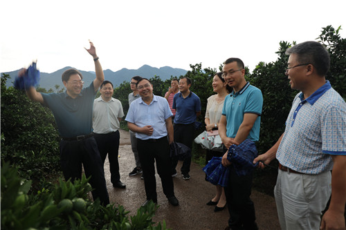 石门开门,迎宾纳客。7月8-9日,橘乡处处闪现着一群贵宾的身影,省农业农村厅二级巡视员廖振坤、省农业农村厅种植业处副处长成智涛、省园艺研究所研究员李先信、省柑橘协会秘书长陈铁、副会长刘尚全等领导、专家一行来到橘乡石门,就柑橘产业建设、新一轮柑橘品改等情况深入调研并进行座谈。
