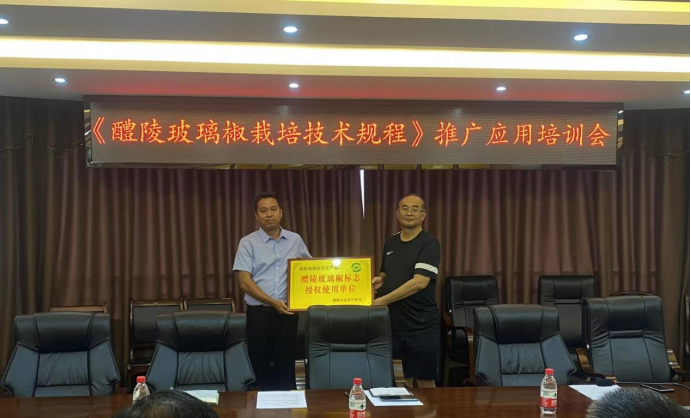 会上,市蔬菜作物站站长杨立红介绍了我市玻璃椒产业发展、特色品牌、示范园区以及标志使用等情况,市绿色食品发展站站长杨建友对玻璃椒质量安全监管进行了指导培训。随后举行了醴陵市玻璃椒农产品地理标志使用协议签订及授牌仪式,种植业主对玻璃椒产业发展积极提出意见与建议,相互交流生产经营经验。