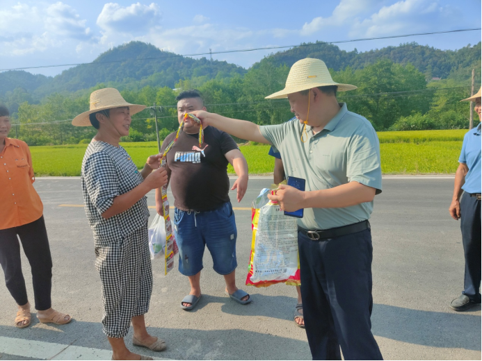 与此同时,该局在关键时间节点,开展以送抗旱器材、送抗旱资金和送关怀的“三送”下乡活动,为旱灾严重地区的群众解决实实在在的困难和问题。23日下午,在三圣乡北流溪村的“三送”现场,县农业农村局主要负责人带领相关工作人员为该村种粮大户送去抗旱器材潜水泵和水管,为三圣乡送去可种植983亩的救灾补损物资苦荞种子2950公斤、可种500亩的白萝卜、白菜、红萝卜等蔬菜种子;为子良镇水田岗村、谭村各送潜水泵5台、水管1000米,各送资金5万元用于抗旱基础设施建设,并于晚上在子良镇谭村召开以茶叶为主题的抗旱救灾屋场培训会,指导茶农如何对茶叶进行灾后培管,指导村民如何开展灾后自救等。同时,稳定群众面临大灾的情绪,安抚群众的心情,鼓励群众形成合力,全力投入抗旱救灾补损。