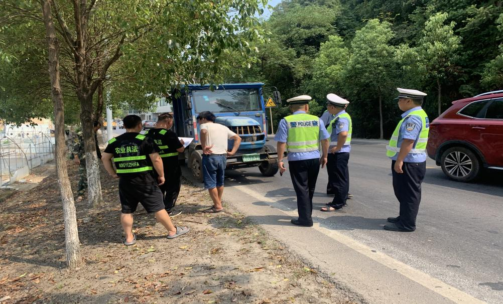 联合执法人员现场检查悬挂外地牌照拖拉机