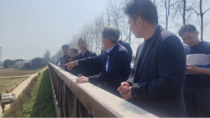 朱恩林在笔架山乡中塘村调研高标准农田建设“小田改大田”工程进度