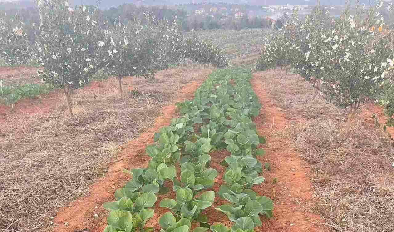 走进祁阳市现代农业产业园的油茶基地,只见成行的油茶树间,一行行油菜幼苗绿意盎然,在冬日暖阳下迎风摇曳。“上有油茶、下有油菜”的立体格局相映成趣,既保留了油茶生长所需的生态空间,又让闲置林地得到高效利用。