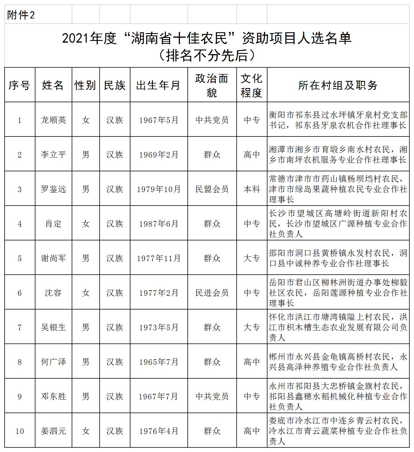 2.《2021年度“湖南省十佳农民”资助项目人选名单》