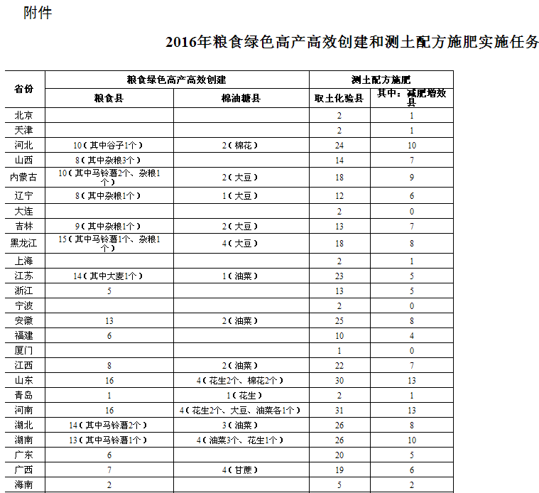 附件:2016年粮食绿色高产高效创建和测土配方施肥实施任务
