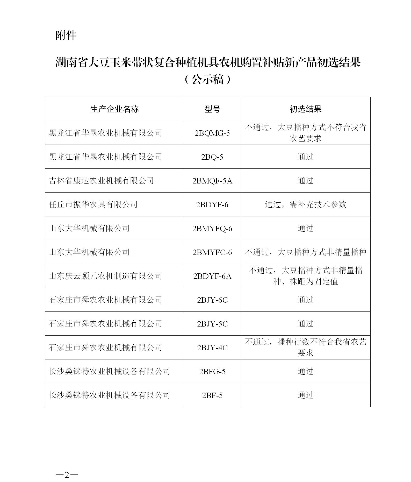 附件:湖南省大豆玉米带状复合种植机具农机购置补贴新产品初选结果(公示稿)