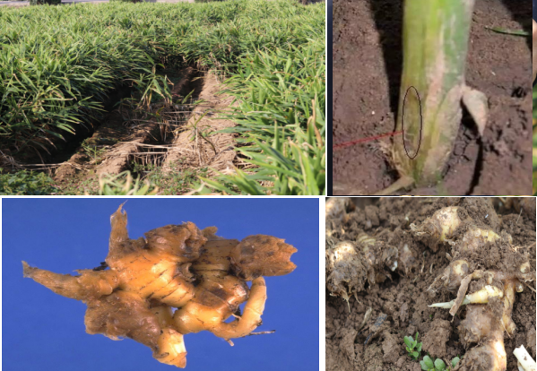 主要病害:姜瘟病、茎基腐病、根结线虫病、斑点病、炭疽病。