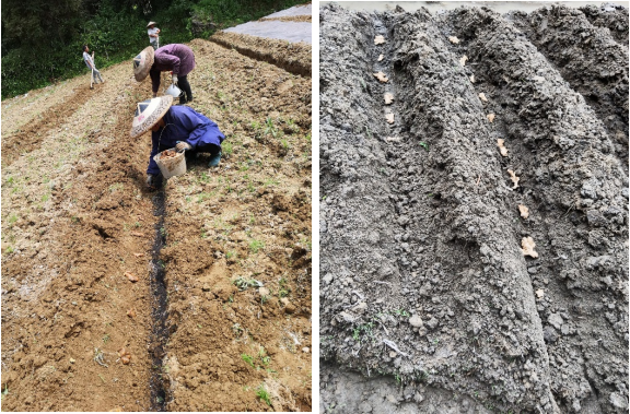 开好畦沟、腰沟、围沟,沟沟相通、雨停田干。采用深沟高畦栽培,畦宽1.8m、畦高30cm,围沟宽30cm、深50~60cm,每畦均匀纵开种植沟3条。