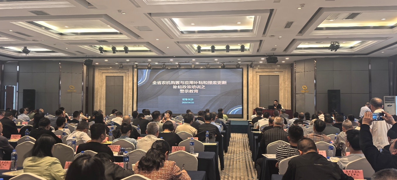 为深入贯彻落实国家和省级关于农机购置与应用补贴、农机报废更新补贴政策的部署要求,确保政策科学、高效、规范、廉洁实施,4月9日至10日,全省农机购置与应用补贴和农机报废更新补贴暨警示教育培训在长沙举办。各市州、县市区农业农村局(农机事务中心)负责农机购置与应用补贴和农机报废更新补贴工作的分管负责同志和业务骨干共约280人参加培训。