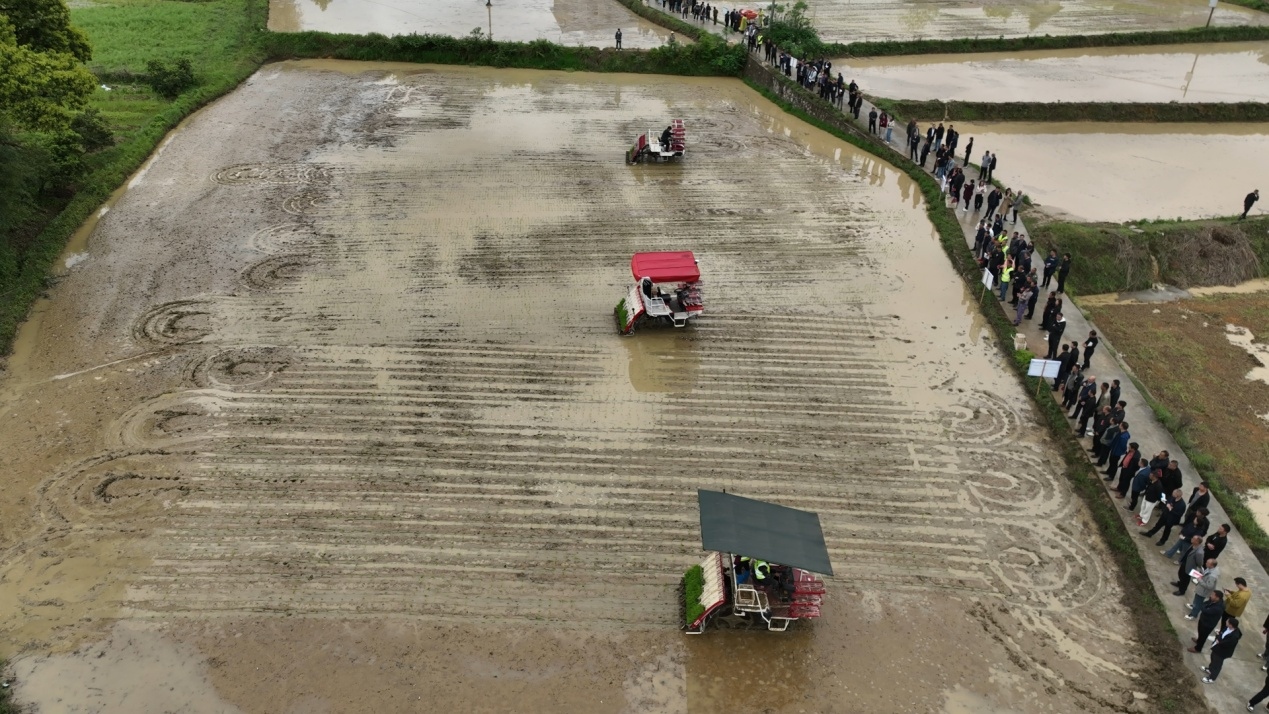 4月16日,2026年全省水稻制种机械化作业现场演示活动在靖州县举行。来自全省13个制种大县的种业和农机相关负责同志及种植大户、部分种业和农机企业负责人等约150人参加活动。