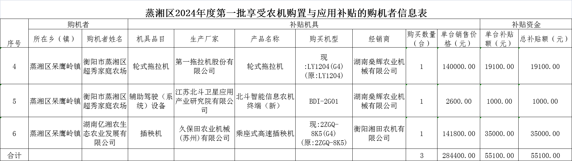 2024年度蒸湘区第一批享受农机购置与应用补贴的购机者信息表
