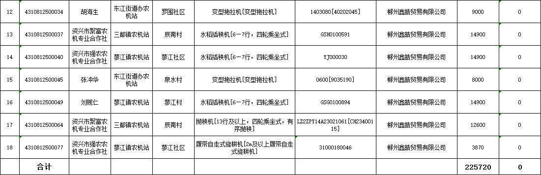2025年度资兴市农机报废补贴的农户信息表(第二批)公示表