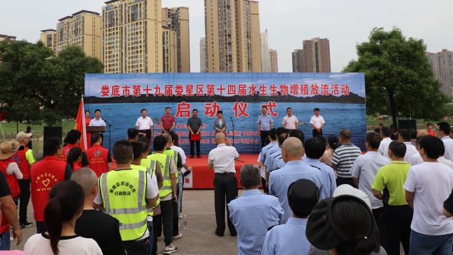 6月9日,娄底市2022年第十九届、娄星区第十四届水生生物增殖放流启动仪式在娄星区涟水公园举行。