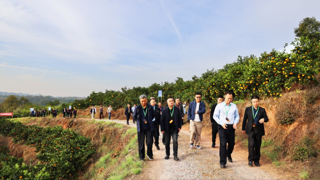 与会人员观摩芷江镇柑橘病虫害绿色防控与统防统治融合推进示范区