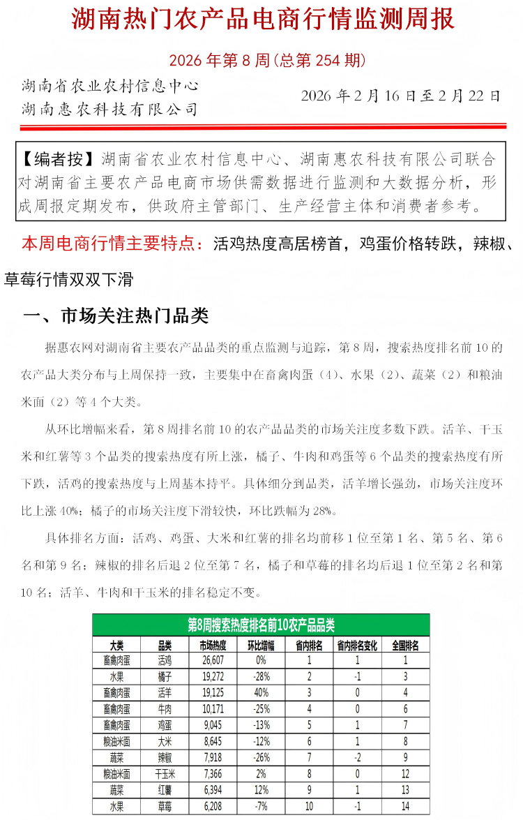 湖南热门农产品电商行情监测周报(2026年第8期)