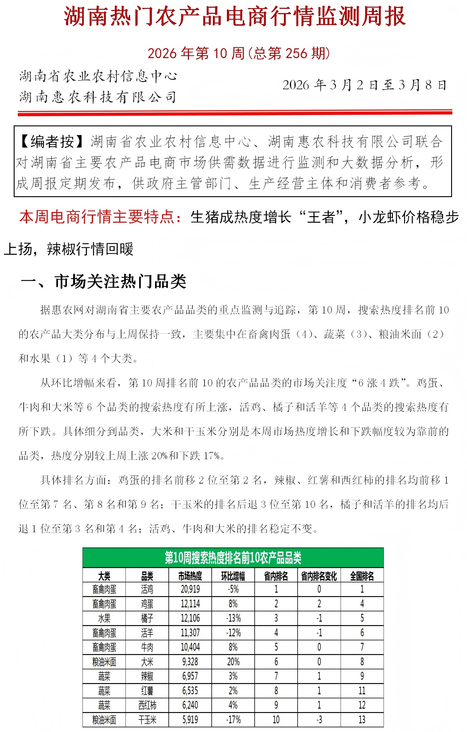 湖南热门农产品电商行情监测周报(2026年第10期)