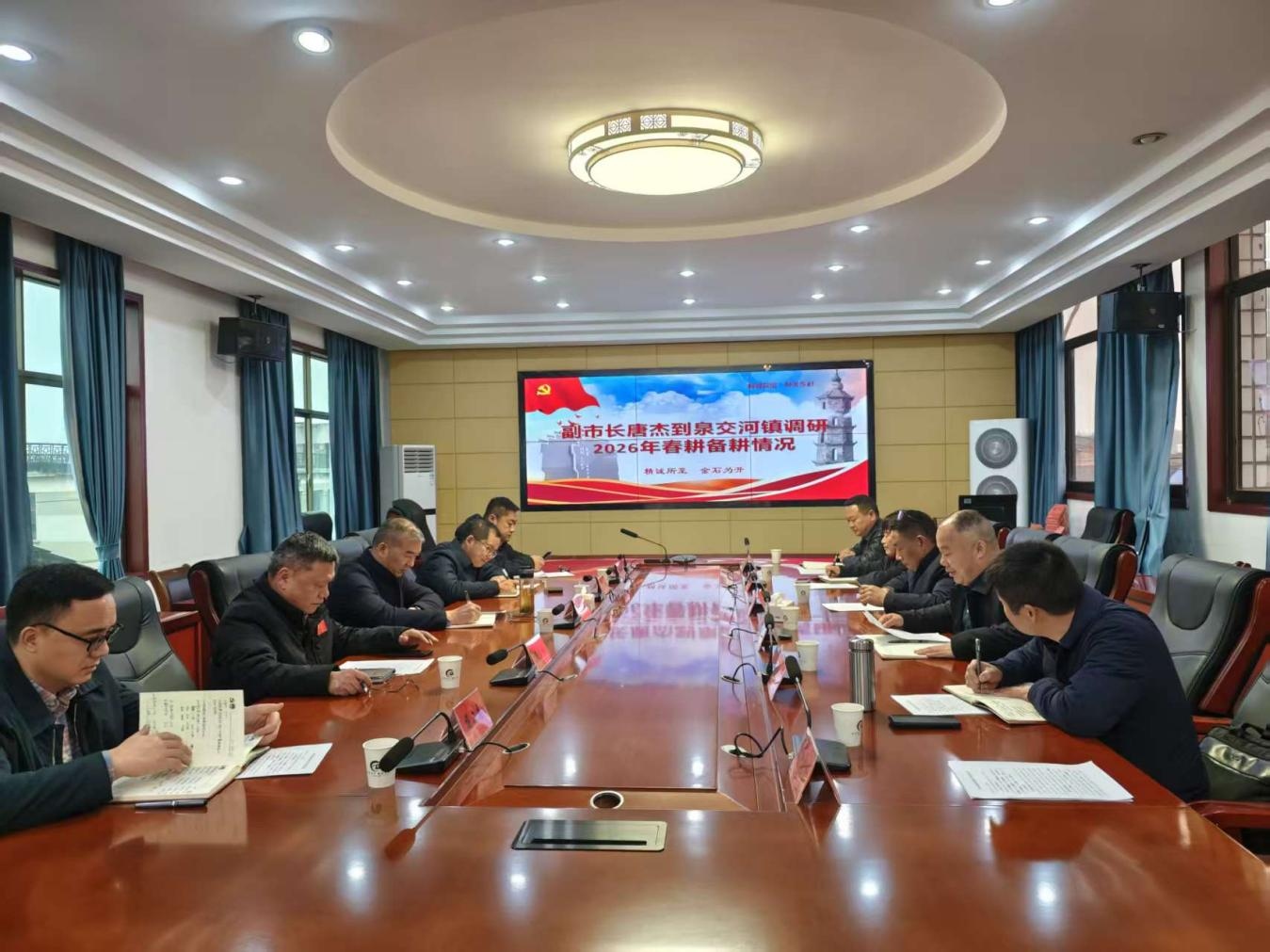 随后,在泉交河镇人民政府召开座谈会,听取了镇、区两级关于当前春耕备耕所做工作的情况汇报,并对下阶段工作进行了调度。唐杰强调,做好春耕备耕工作,对于确保全年粮食丰产和农民增收至关重要,要扛牢粮食安全政治责任,紧盯目标任务,加强督导检查,确保完成春耕生产任务目标;要强化问题导向,精准掌握春耕生产中的真实情况与困难,做到提前介入、主动发现问题,要进一步压实早稻生产责任,确保任务到田,责任到人,切实提高早稻面积吻合率;要加强分析研判,科学指导农业生产,优化农业产业结构,推动农林牧渔业总产值稳步提升。