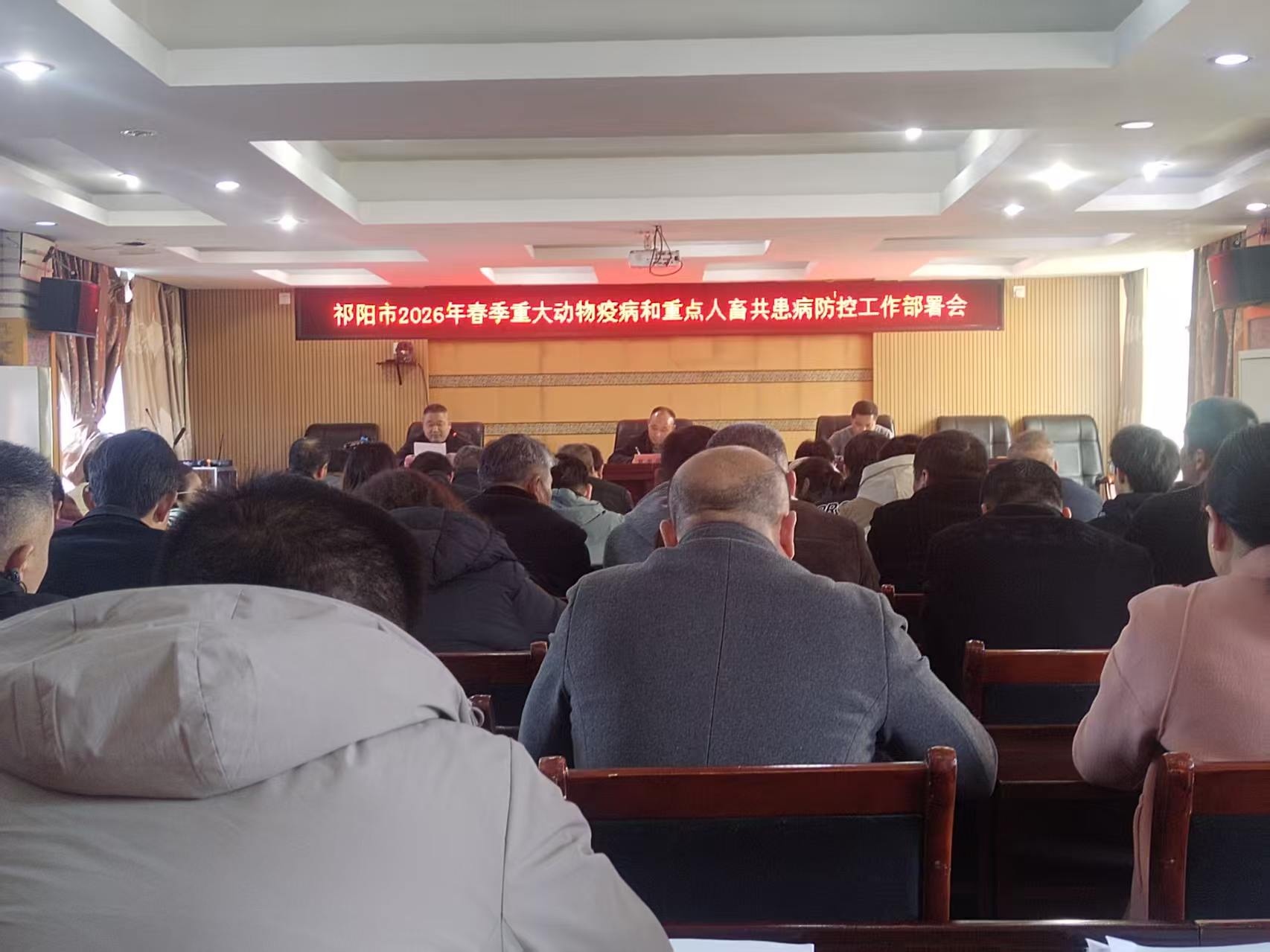3月6日,祁阳市召开2026年春季重大动物疫病和重点人畜共患病防控工作部署会,市农业农村局党组书记、局长段国华出席会议,市农业农村局相关负责人、各镇(街道)畜牧兽医工作人员及各相关部门代表共79人参会。