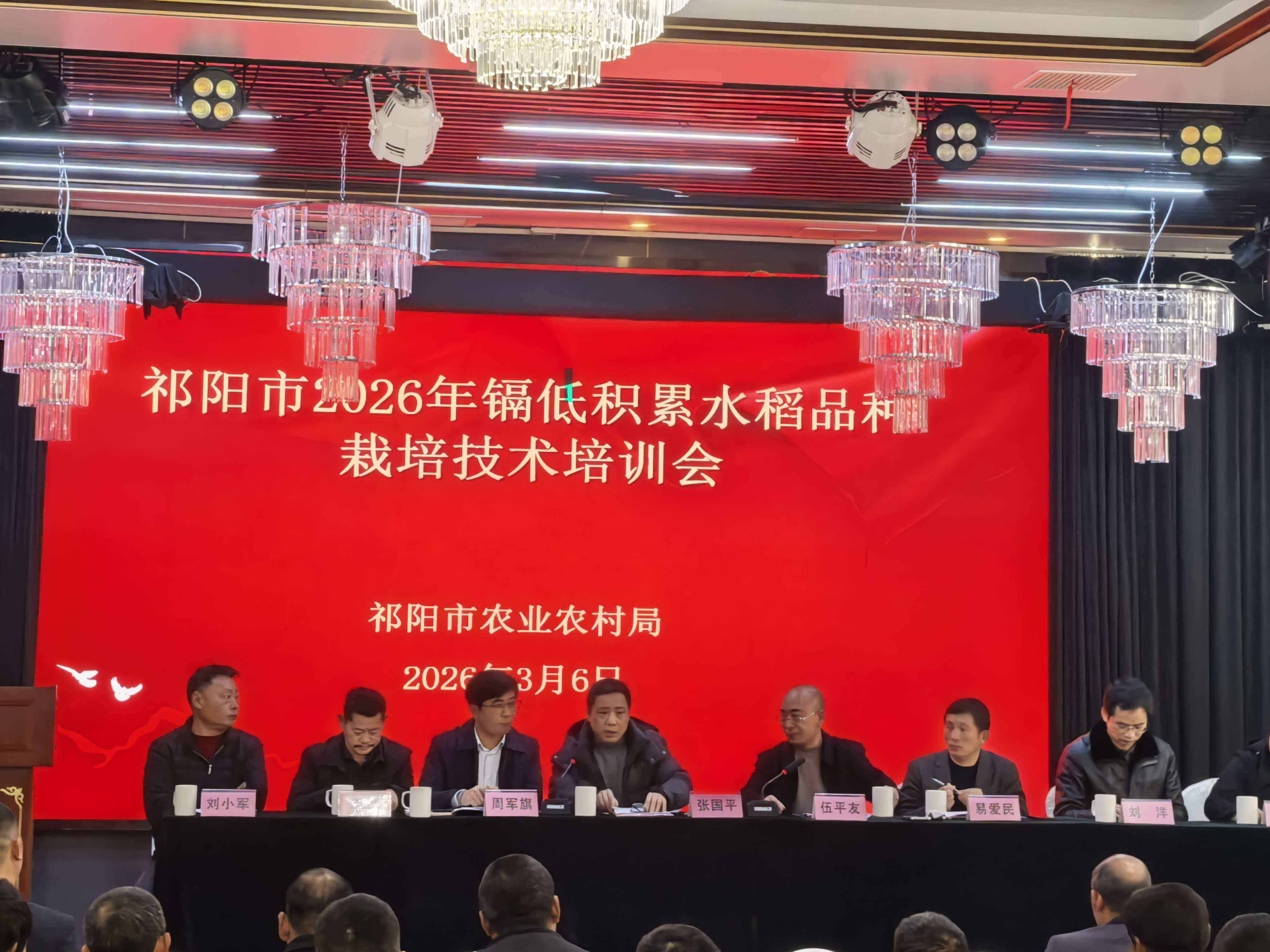为落实省委、省政府决策部署及有关文件精神,加快镉低积累水稻品种推广,推进重金属污染耕地治理,3月6日,祁阳市召开2026年镉低积累水稻品种推介暨技术培训工作会议,省农科院驻永州工作组专家,市农业农村局领导,保险公司、粮食收购企业、种业企业代表及农业技术人员、种植大户等200余人参会。