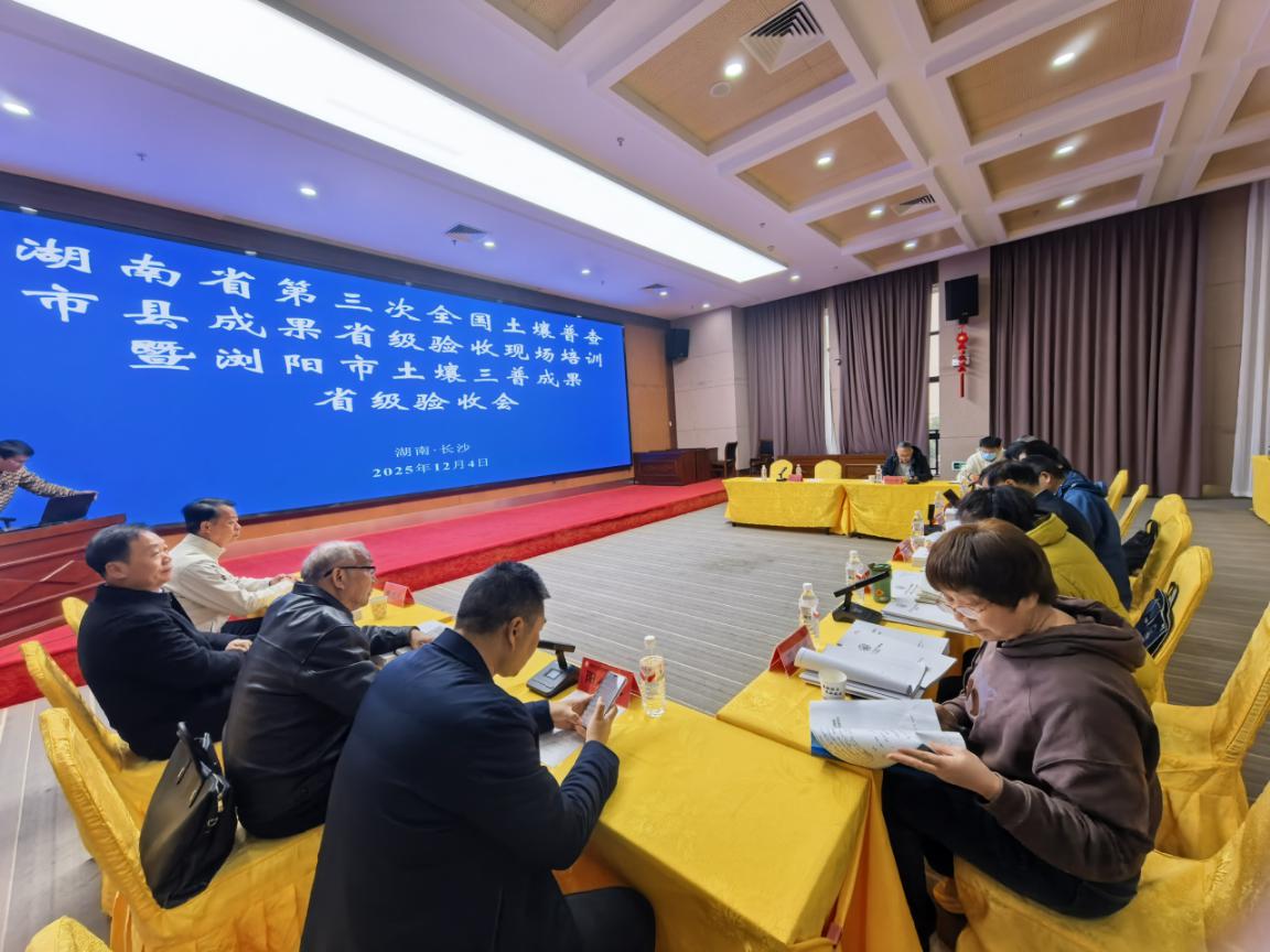12月4日,浏阳市率先在全省召开第三次全国土壤普查成果省级验收暨现场观摩会。在验收会议上,由省、市、县级7名专家组成的验收组严格依据国家及省级土壤普查的技术规范与验收要求,对土壤普查工作报告、总体报告,以及包括土壤属性与制图、土壤退化、障碍与改良、土壤有机质、土壤资源评价与利用、数据报告、土壤农业利用适宜性、土特农品土壤适宜性评价等多个专题在内的成果资料进行全面、细致、严格的审查、评议和质询。